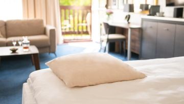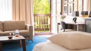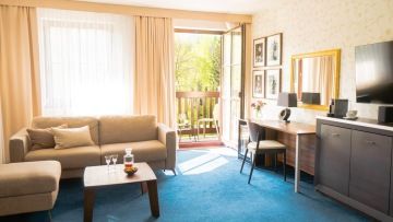 Unsere Junior-Suiten mit Balkon sind die perfekte Kombination aus Luxus und Großzügigkeit, um auch die anspruchsvollsten Gäste zufrieden zu stellen. Diese 50 m2 großen Apartments, die auch über einen Balkon verfügen, bieten viel Platz für einen komfortablen Aufenthalt. Sie sind die ideale Wahl nicht nur für Paare, die einen romantischen Rückzugsort suchen, sondern auch für Familien mit Kindern, da sie viel Platz für gemeinsame Zeit und Privatsphäre bieten.