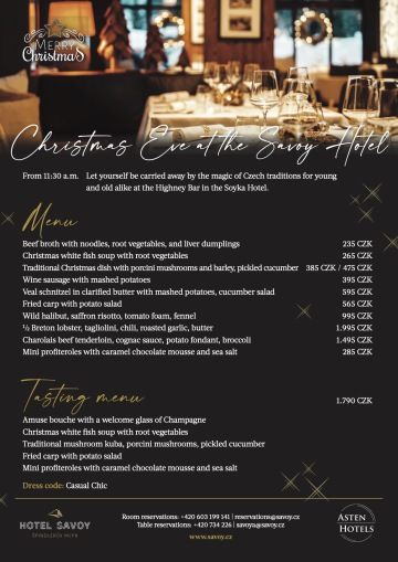 4:30 p.m. – 10:00 p.m. Restaurace - Christmas Eve dinner