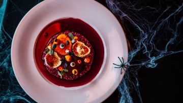 A protože k Halloweenu patří i dobroty, připravili jsme halloweenské menu plné kreativních překvapení – třeba upíří jednohubky zakapané elixírem mládí nebo čokoducha v malinové truhle s vanilkovým lektvarem.