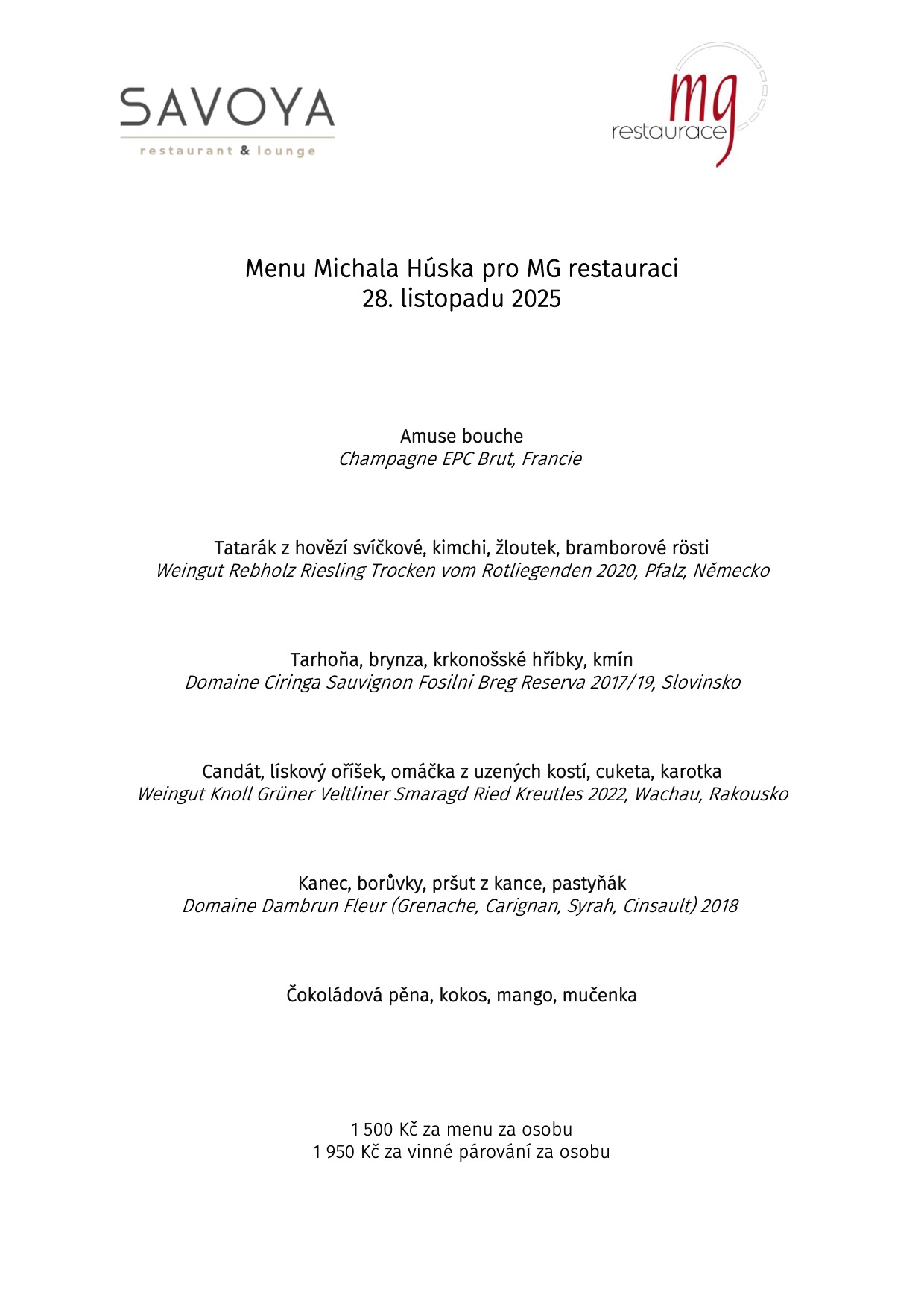 Pak si 28. 11. nenechte ujít jedinečnou příležitost ochutnat vyhlášenou kuchyni našeho šéfkuchaře Michala Húska – tentokrát v MG restauraci v Mladé Boleslavi.