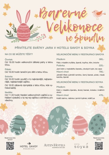 Velikonoce vždy rozzáří hotel veselými barvami. Příroda se probouzí, květiny rozkvétají a za hotelovými dveřmi Vás vítají první teplé sluneční paprsky. I kuchaři ladí své velikonoční menu do zelena a všichni se těší na svěží jarní atmosféru a nový začátek.